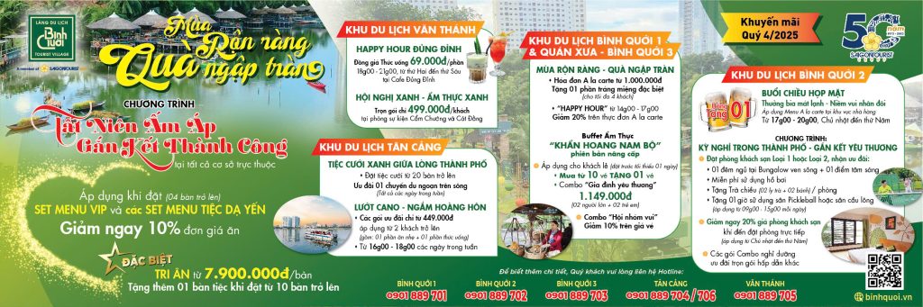 Khi những ngày thu dần khép lại, mùa rộn ràng cuối năm đang mở ra, Làng Du lịch Bình Quới hân hạnh mang đến những ưu đãi đặc biệt như một lời tri ân !