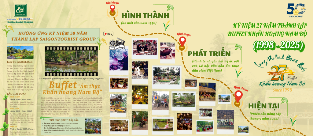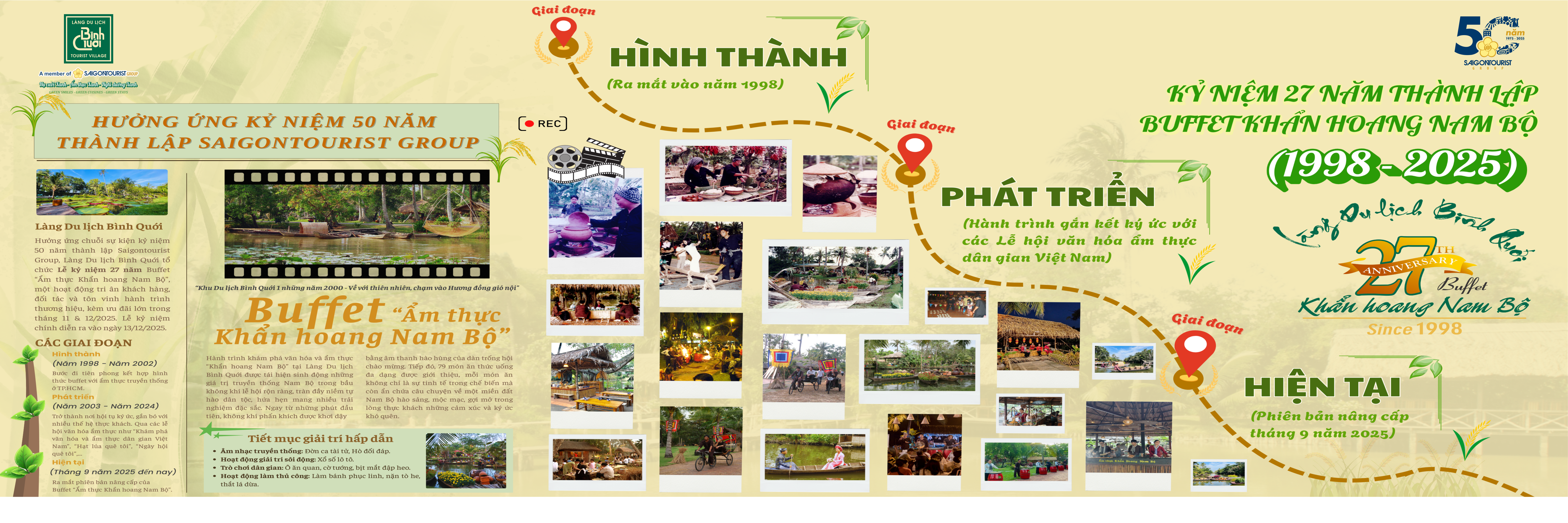 🌍 Hưởng ứng 50 năm thành lập Saigontourist Group, Làng Du lịch Bình Quới tổ chức chương trình Mừng Sinh nhật 27 Năm Buffet “Ẩm Thực Khẩn Hoang Nam Bộ” – nơi hội tụ tinh hoa văn hóa & ẩm thực Nam Bộ suốt gần ba thập kỷ qua.