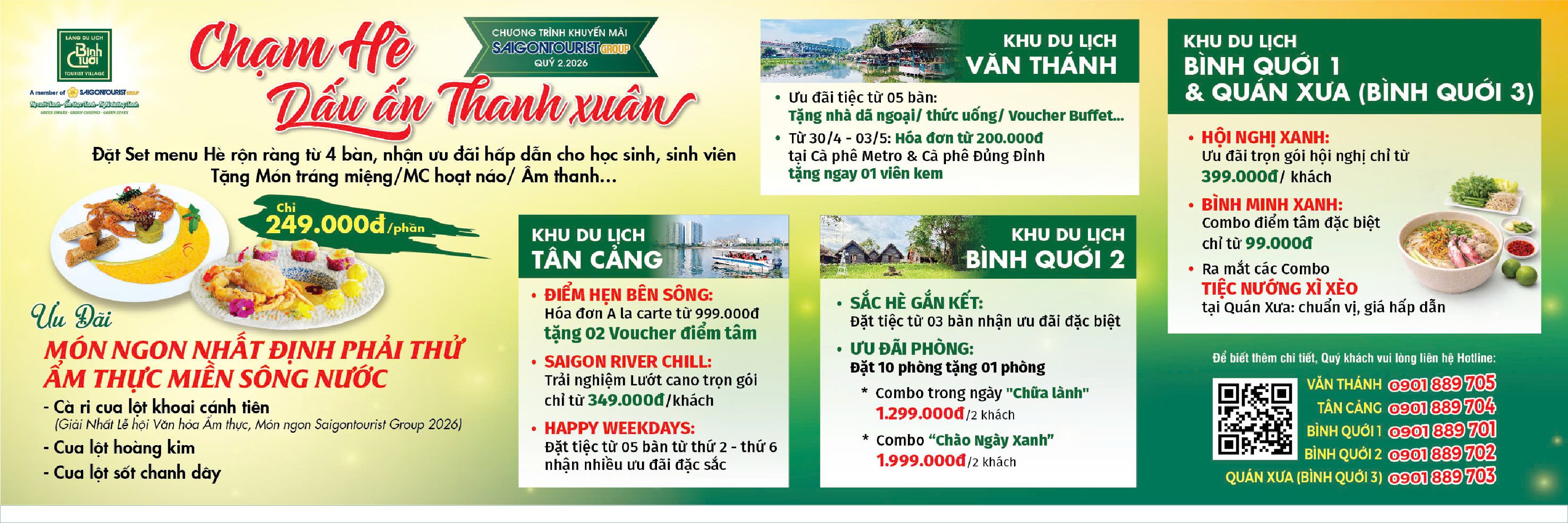Các Hệ Thống nhà hàng của Bình QuớiHệ thống nhà hàng phục vụ khách vãng lai, tiệc hội nghị, tiệc gia đình, tiệc cưới với trang thiết bị dụng cụ hiện đại đạt chuẩn du lịch và thực đơn đặc sắc từ công tác sưu tầm món ăn dân gian các vùng miền Việt Nam.
